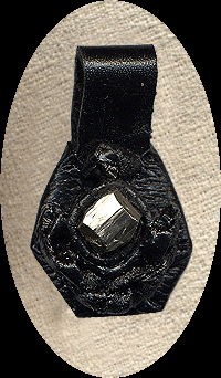Высота: 51 мм, золотистый природный кристалл пирита в коже, объемная подвеска