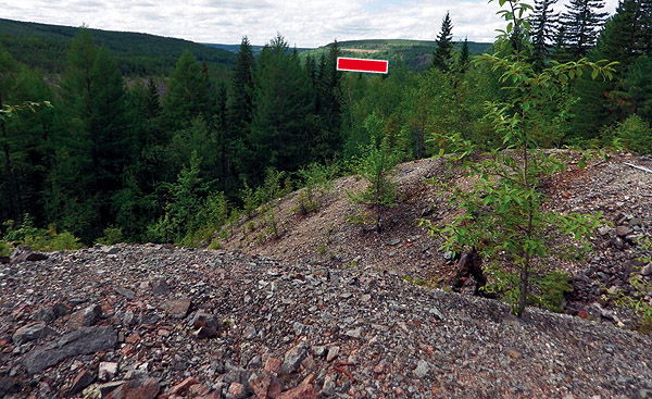 Шпинелевая копь была сильно завалена отвалом кимберлита и заросла кустарником.